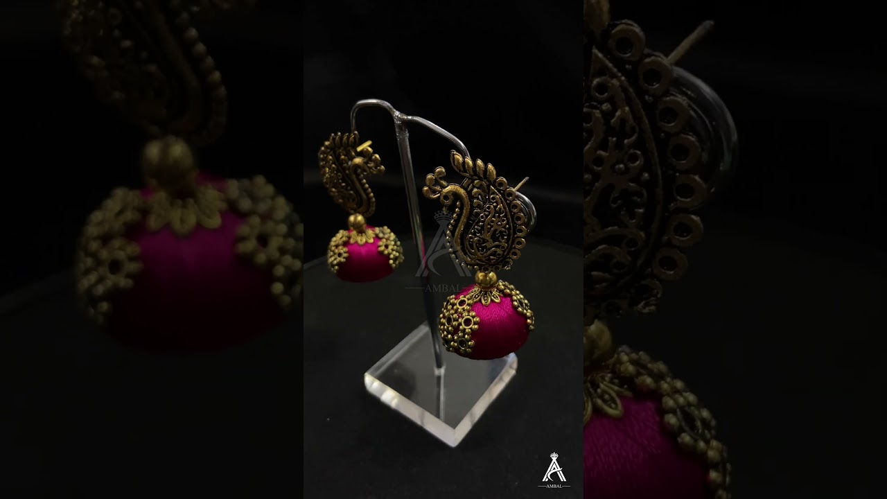 Antique Peacock Stud with Chakri Worked Silkthread Jhumki - EMB0005