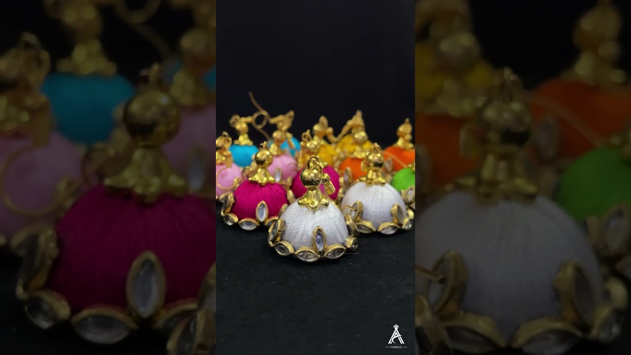 Floral Designed Kundan Worked Silkthread Jhumki - EMB0031