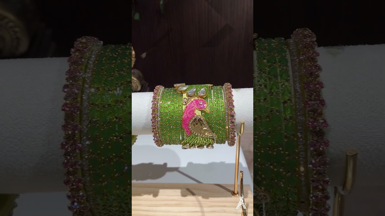 Peacock Designed with Stone Worked Bridal Silkthread Bangle - P0035 (Double Hand)